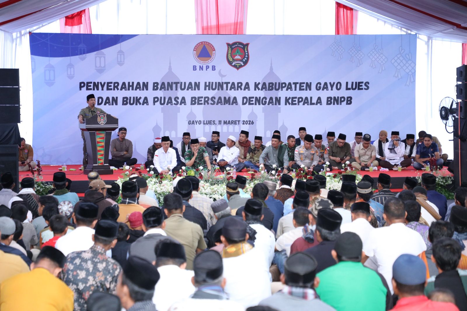 Pada kesempatan tersebut, Kepala BNPB juga mengajak warga penghuni huntara untuk berbuka puasa bersama. Selain itu, Suharyanto menyerahkan santunan kepada anak-anak yatim piatu serta bantuan sembako secara simbolis kepada warga.
