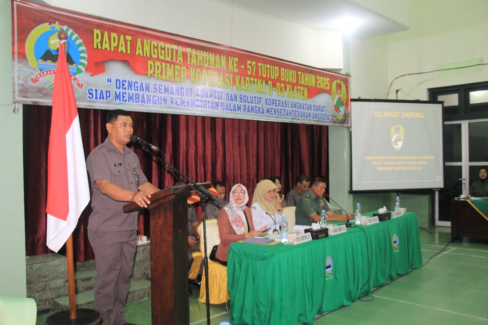 Klaten, KabarTerkiniNews.co.id – Bertempat di Aula Makodim 0723/Klaten, telah dilaksanakan Rapat Anggota Tahunan (RAT) ke-57 Primkop Kartika D-03 Klaten Tutup Buku Tahun 2025, dengan mengusung tema “Dengan Semangat Adaptif dan Solutif, Koperasi Angkatan Darat Siap Membangun Kemandirian Dalam Rangka Mensejahterakan Anggota Kegiatan berlangsung dengan aman dan lancar serta dihadiri oleh para undangan dan anggota koperasi. Rabu (11/02)