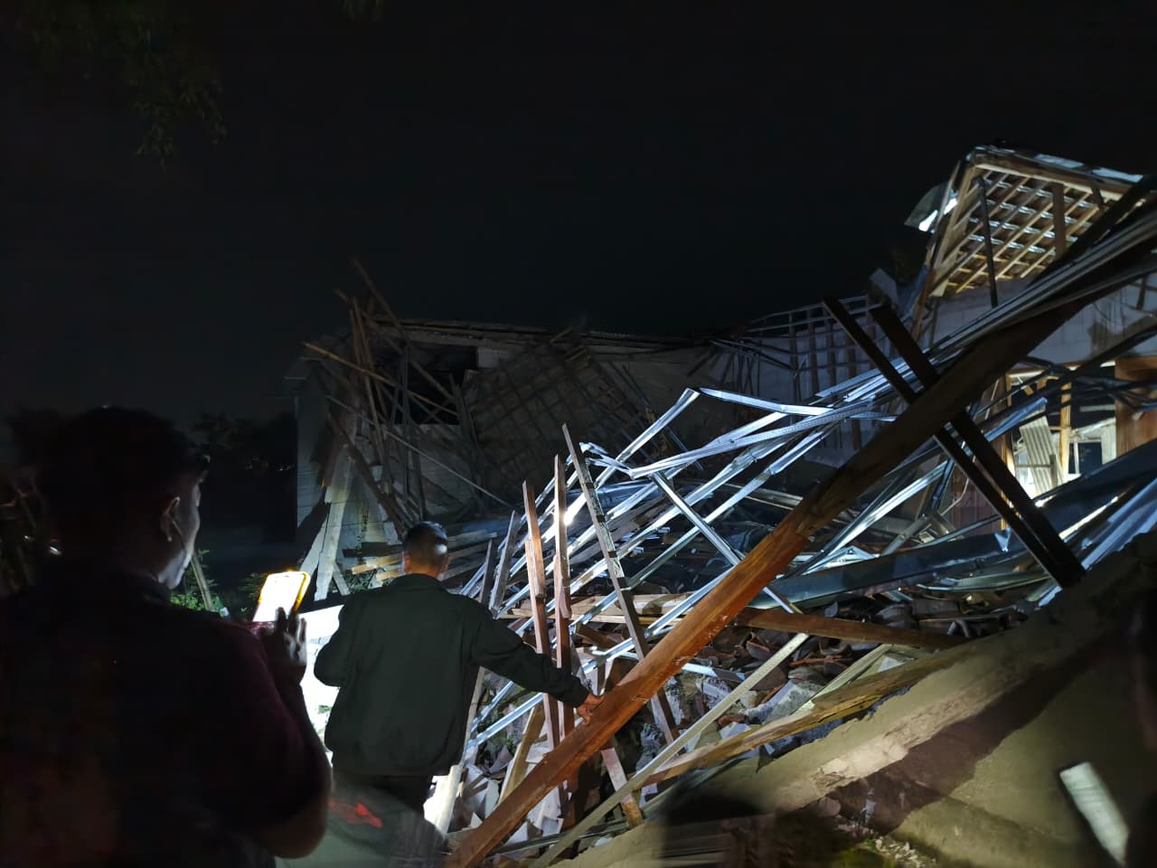 Namun, diduga karena kondisi bangunan yang tidak standar serta tidak mampu menahan beban, struktur bangunan tersebut tiba-tiba roboh dan menimpa para pekerja yang berada di bawahnya. Akibat kejadian tersebut, satu korban meninggal dunia di lokasi, satu orang mengalami luka berat, dan tiga lainnya berhasil menyelamatkan diri meski mengalami luka ringan.