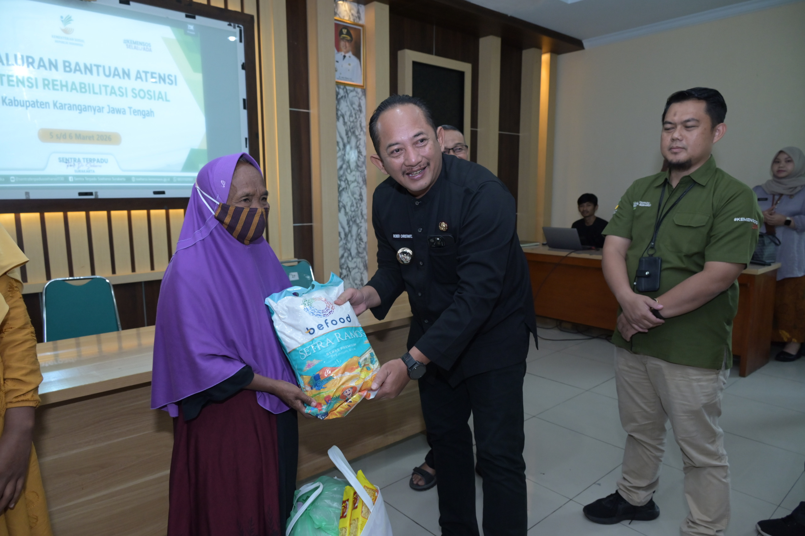 Bupati Karanganyar, Rober Christanto, usai menyerahkan bantuan secara simbolis kepada penerima menyampaikan apresiasi kepada Kementerian Sosial dan seluruh pihak yang telah berkontribusi dalam penyaluran bantuan sosial ini.