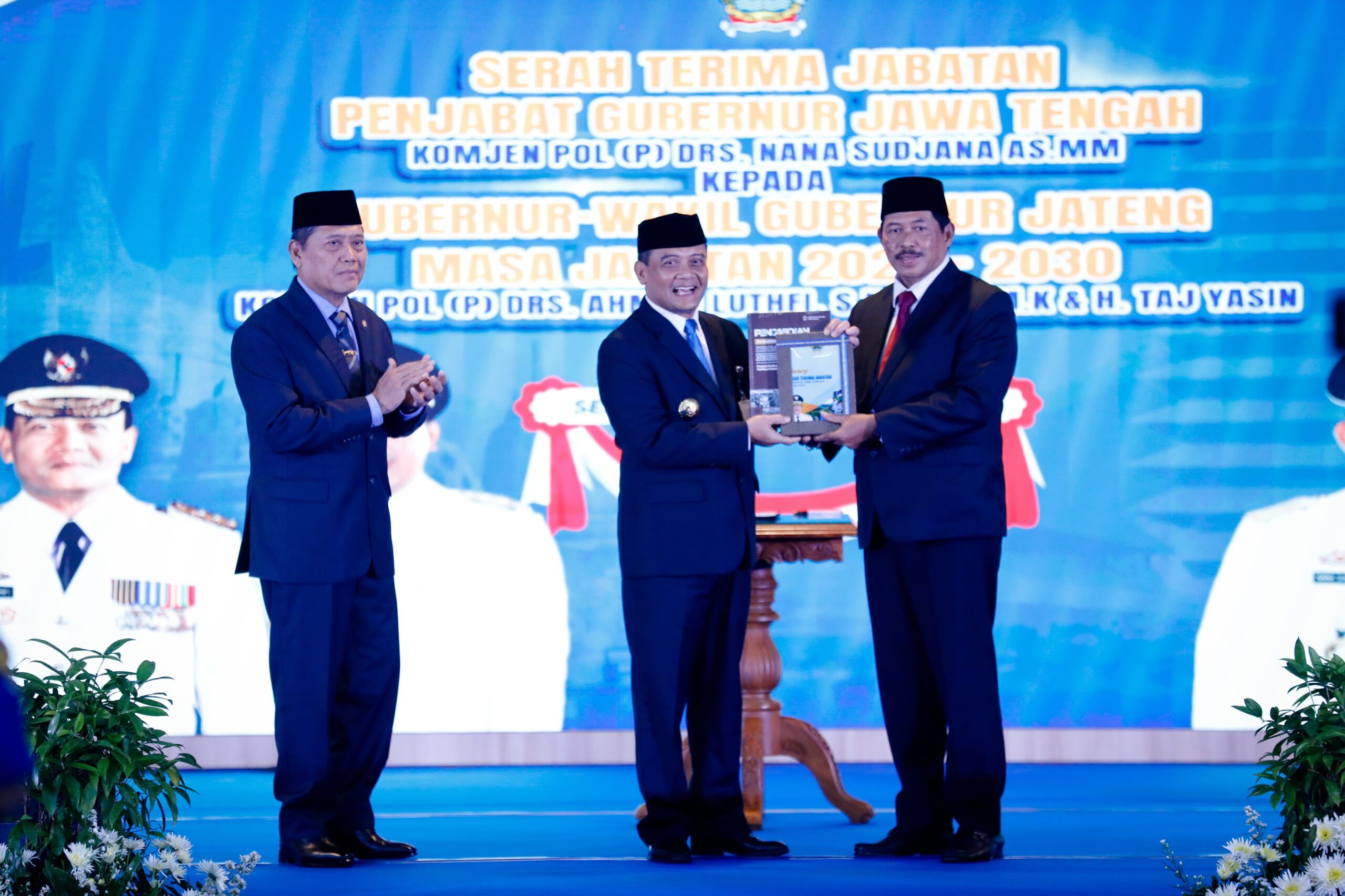 Gubernur baru Ahmad Luthfi dan PJ Gubernur Nana Sudjana saat acara terima jabatan di Gradhika Bhakti Praja ( YN)