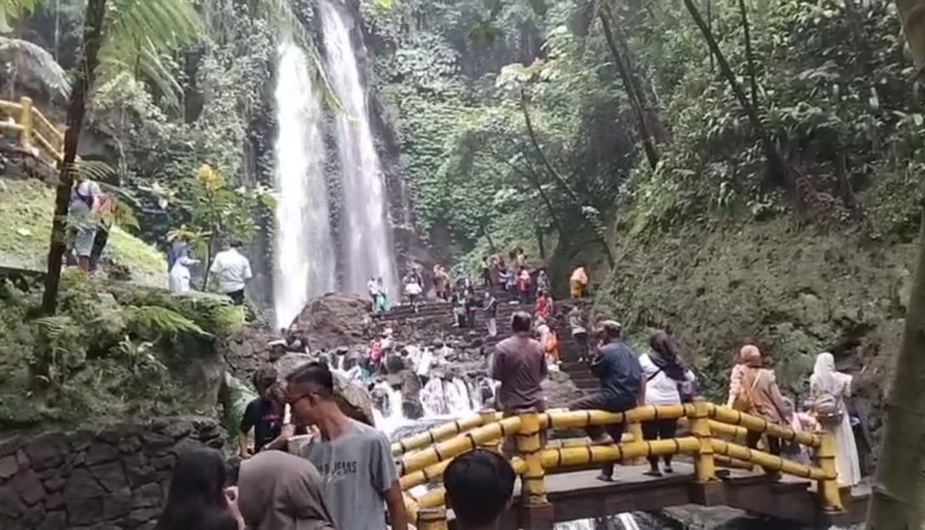 Karanganyar – Air Terjun Jumog yang terletak di Desa Berjo, Kecamatan Ngargoyoso, Kabupaten Karanganyar, kembali menjadi primadona bagi wisatawan saat libur dan cuti bersama Lebaran 2025.