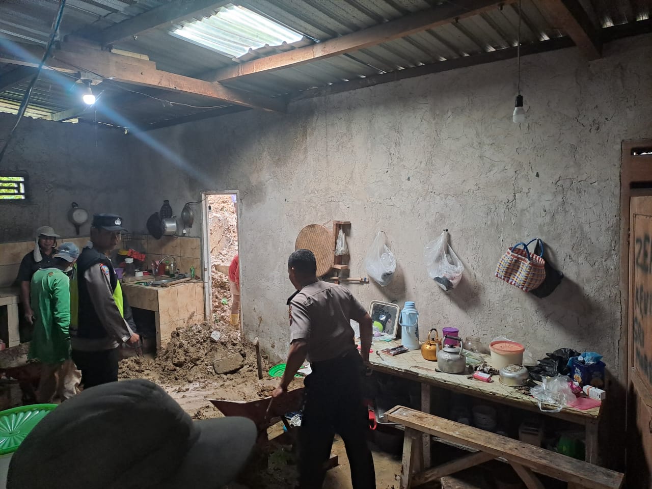 “Tidak ada korban jiwa dalam peristiwa ini,”ujarnya. Kapolsek menjelaskan, sampai saat ini pihaknya masih membersihkan material longsor dari rumah korban.