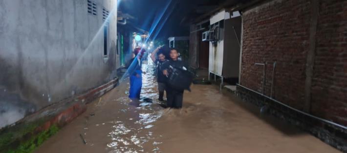 Hujan lebat turut mengguyur wilayah Kecamatan Margasari, Kabupaten Tegal, Selasa (10/2). Peristiwa ini memicu Sungai Kumisik meluap dan merendam pemukiman warga dengan ketinggian muka air mencapai 100 sentimeter.