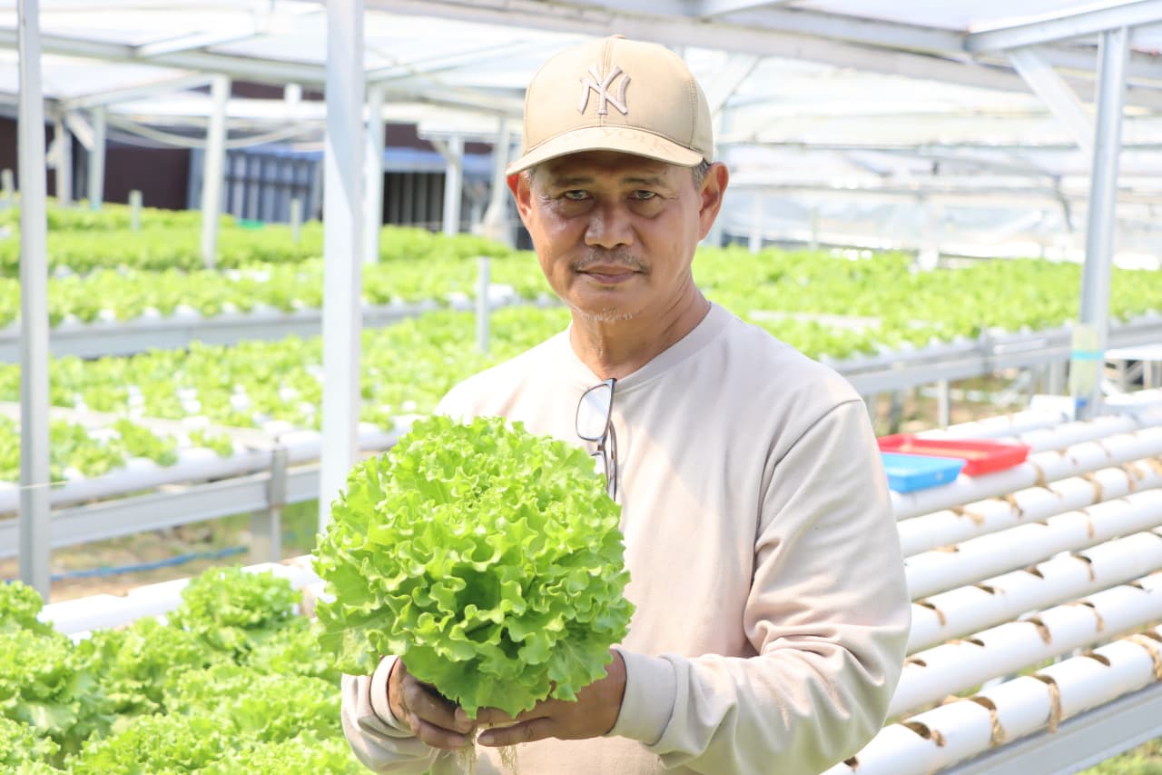 “Anak sedang menekuni bidang pertanian, belajar bersama temannya untuk menanam selada. Saya dukung melalui tenaga membantu setiap hari. Menantu yang meracik nutrisi, anak yang memasarkan,” jelasnya.