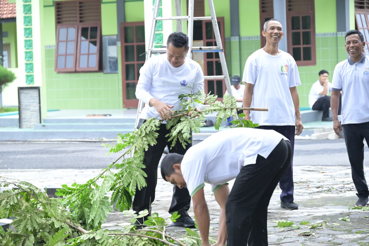 Pemerintah Kabupaten Karanganyar menggerakkan seluruh ASN, pemerintah desa, serta sekolah-sekolah untuk melaksanakan kerja bakti membersihkan lingkungan masing-masing secara bersamaan.