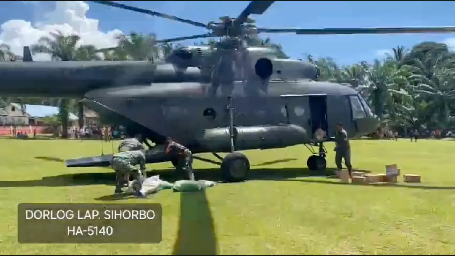 Sementara itu, helikopter TNI MI-17 melaksanakan dua sorti besar dengan kapasitas muatan tertinggi. Bantuan yang diangkut terdiri dari beras, gula, susu UHT, minyak, sarden, biskuit, makanan balita, dan perlengkapan kesehatan. Kedua sorti menuju Lapangan Pandan, Lapangan Sihorbo, dan Lapangan Huta Ginjang dengan total muatan lebih dari 2,2 ton, menjadikan MI-17 sebagai armada utama dalam proses distribusi kali ini.