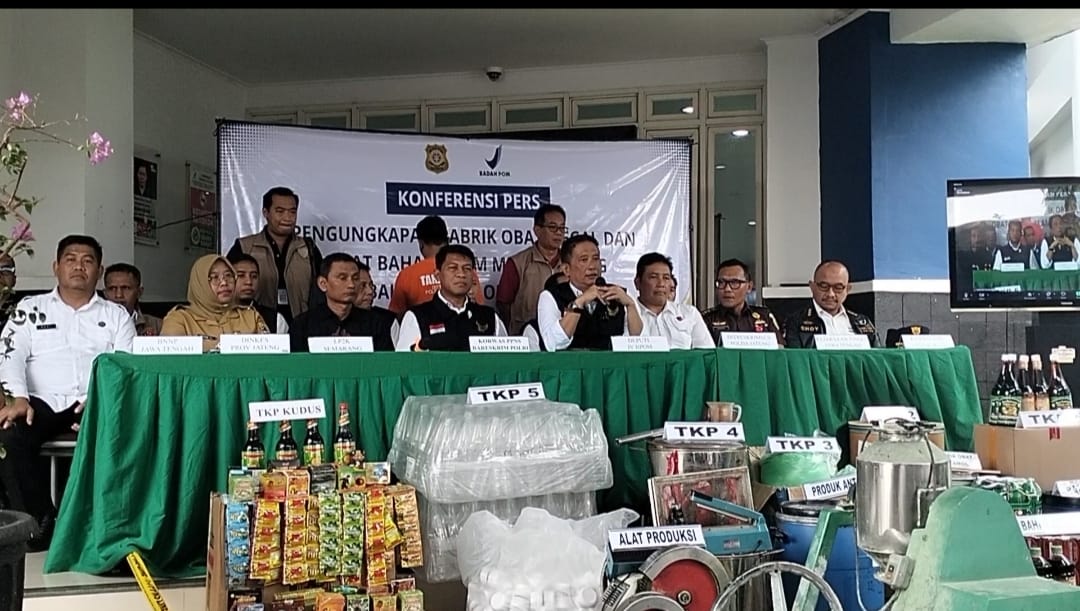Deputi Bidang Penindakan (Deputi 4) BPOM Tubagus Ade Hidayat , mengatakan, Lebih lanjut, Penggerebekan kelima sarana ilegal dilakukan berdasarkan adanya laporan dari masyarakat mengenai dugaan praktik produksi obat dan OBA ilegal atau palsu serta mengandung BKO di lokasi tersebut. Dari hasil pendalaman PPNS BPOM, didapati pemilik fasilitas berinisial AT (41 tahun), yang berdasarkan gelar perkara sudah ditetapkan sebagai tersangka. Saat ini, tersangka telah ditahan di Rumah Tahanan Polda Jawa Tengah. PPNS BPOM juga telah mengambil keterangan terhadap 18 orang saksi untuk keperluan penyidikan, katanya saat konferensi pers ungkap pabrik obat ilegal dan obat bahan alam mengandung bahan kimia, di Kantor BBPOM di Semarang, Senin (26/5/2025).