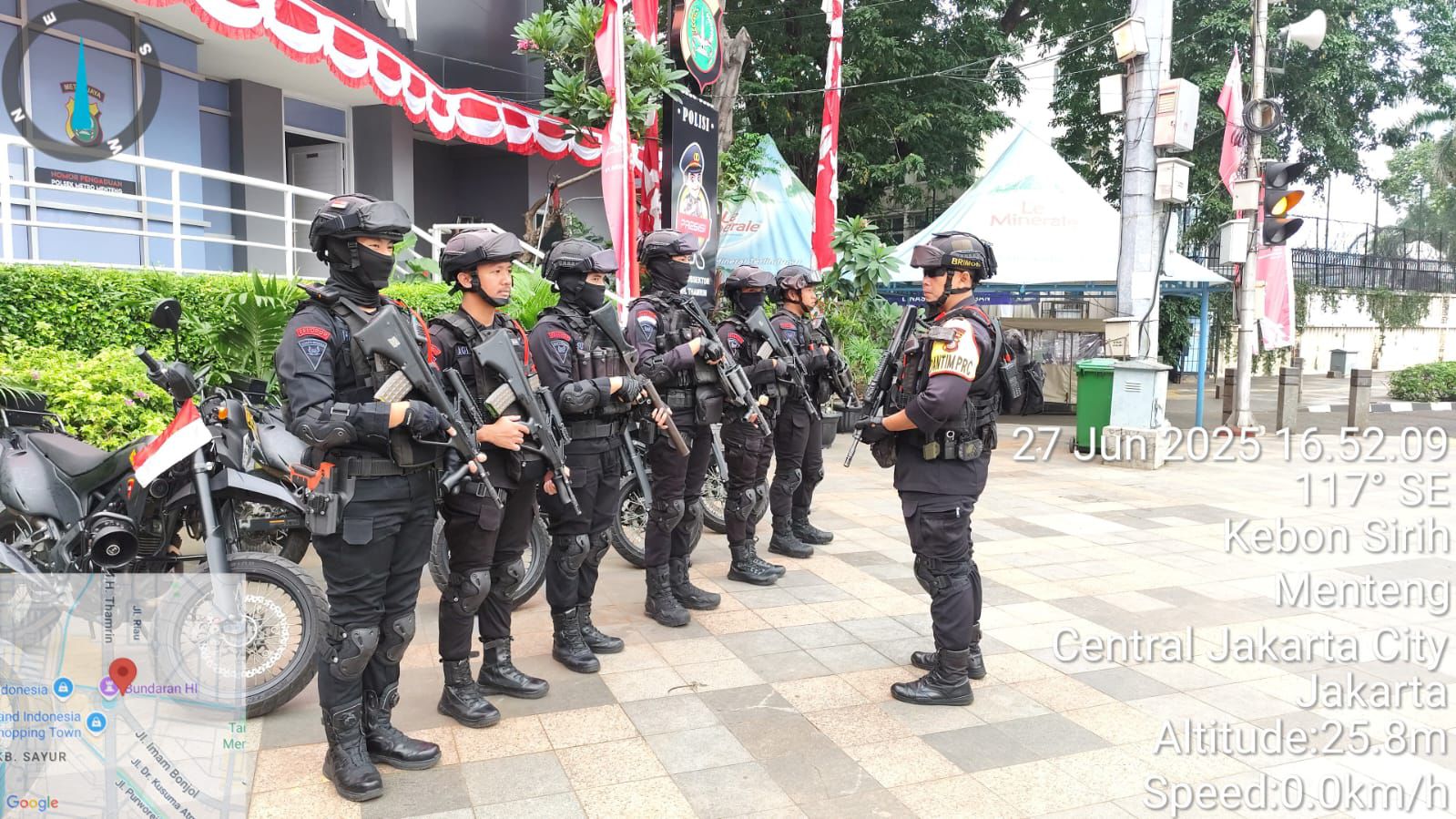 Menjelang sore, personel dari Batalyon A Pelopor dan Batalyon B Pelopor Brimob Polda Metro Jaya diterjunkan untuk melakukan pengamanan terbuka di dua titik utama: Kedutaan Besar Republik Turki dan Hotel Kempinski. Tim patroli Brimob lengkap dengan kendaraan taktis, senjata laras panjang, dan peralatan pengendalian massa disiagakan untuk memastikan situasi tetap kondusif.