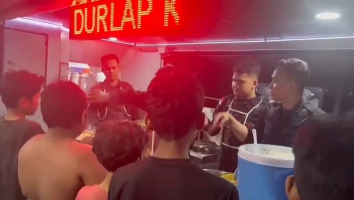 Sejak dibuka, mobil dapur lapangan tersebut langsung diserbu warga. Anak-anak, orang dewasa hingga lanjut usia tampak mengantre dengan tertib sambil membawa piring dan tempat makan. Mereka menerima paket nasi hangat lengkap dengan lauk mi instan dan telur, yang disajikan langsung dari Mobil Dapur Lapangan Brimob.