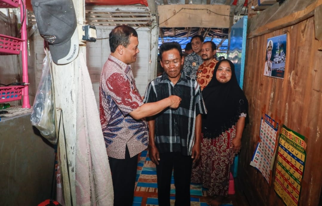 “Jadi rekan-rekan, ini rumahnya Pak Dasuki. Putranya tiga, pekerjaan nelayan. Setelah dilakukan survei dari kita, nanti akan kita bangun untuk renovasi dari mulai atap, dinding, lantai, semua kami bangun,” katanya.