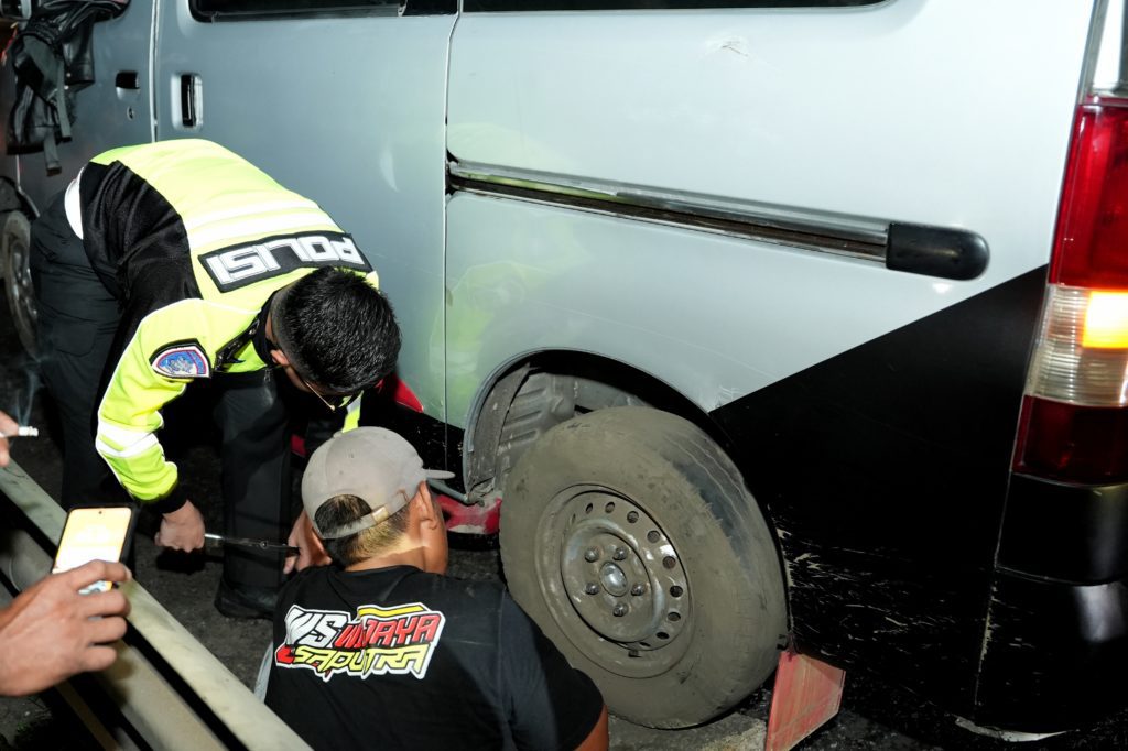 Dalam patroli tersebut, petugas mendapati kendaraan pemudik yang mengalami pecah ban di bahu jalan tol. Dengan sigap petugas memberikan bantuan guna mencegah kecelakaan serta menghindari gangguan terhadap arus lalu lintas.