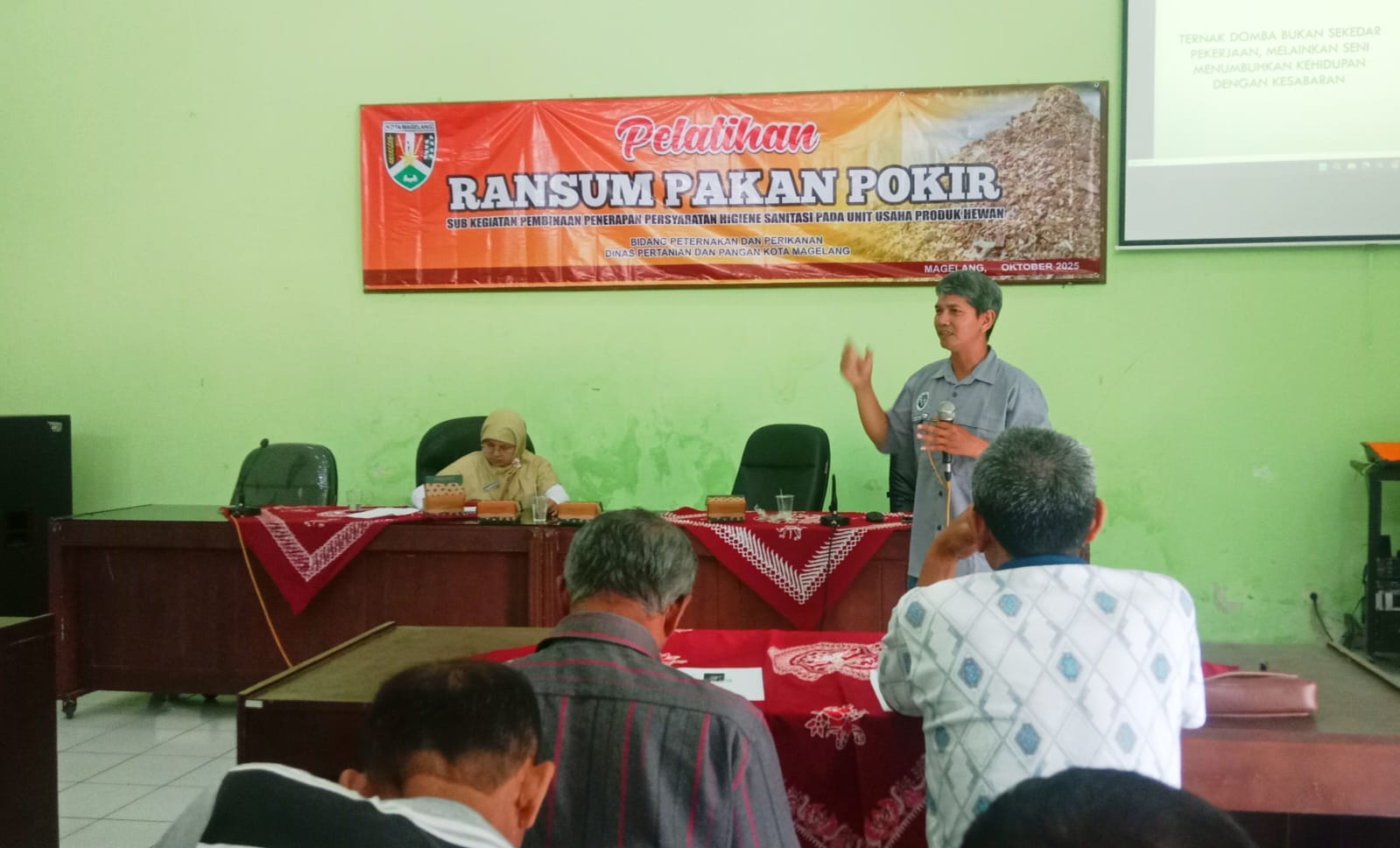 Magelang, KabarTerkiniNews.co.id – Dinas Pertanian dan Pangan (Disperpa) Kota Magelang melalui Bidang Peternakan dan Perikanan mengadakan Pelatihan Ransum Pakan Pokir, Rabu (08/10/2025). Kegiatan yang bertempat di Aula Disperpa ini merupakan Sub Kegiatan Pembinaan Penerapan Persyaratan Higiene Sanitasi Pada Unit Usaha Produk Hewan.