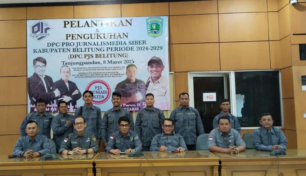 Belitung – Dewan Pimpinan Cabang (DPC) Pers Pro Jurnalis Media Siber (PJS) Kabupaten Belitung resmi dilantik. Pelantikan ini dilakukan oleh Ketua Dewan Pimpinan Daerah (DPD) PJS Provinsi Bangka Belitung, Rikky Permana, di Aula Kantor Bupati Belitung. Sabtu, (8/3/2025)
