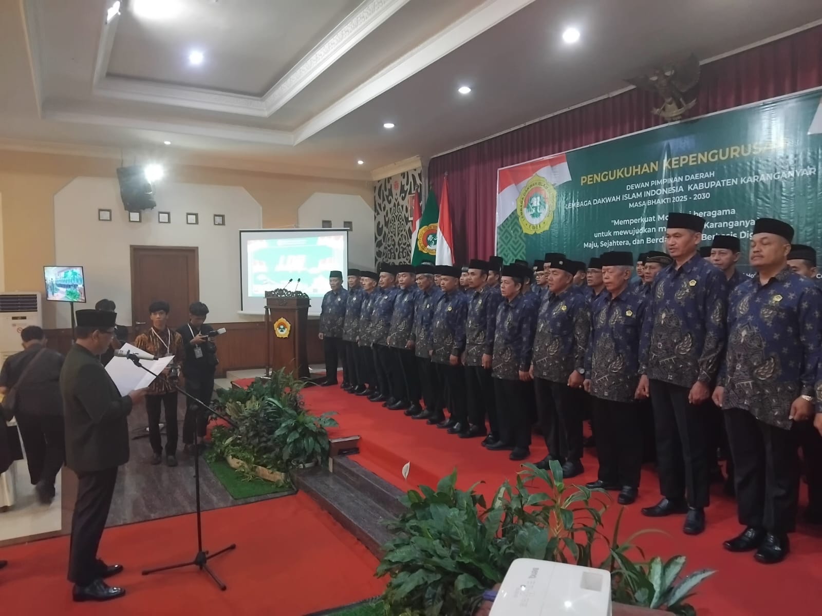 Jajaran pengurus DPD LDII Karanganyar secara resmi dikukuhkan oleh Ketua DPW LDII Jawa Tengah, Singgih Tri Sulistiyono, Sabtu (17/5/2025).