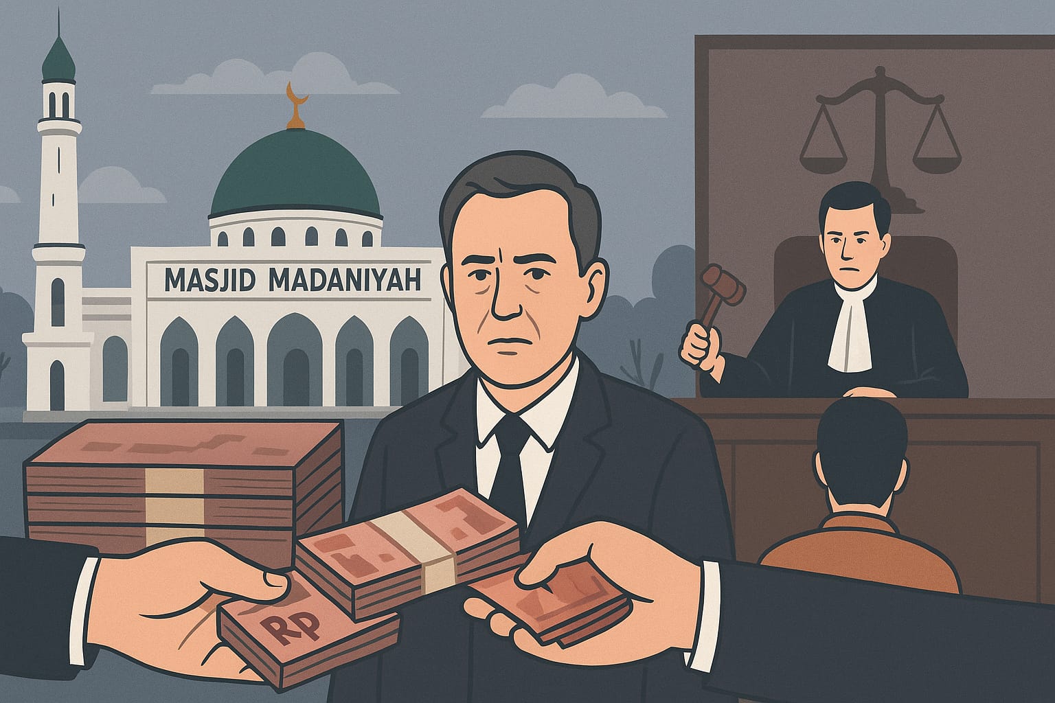 Proses hukum dugaan korupsi pembangunan Masjid Agung Madaniyah Kabupaten Karanganyar menghadirkan dinamika yang memicu sorotan publik. Proyek yang semula menjadi kebanggaan warga ini kini terseret dalam kasus dugaan korupsi puluhan miliar rupiah, dengan sejumlah pelaksana proyek dan pejabat operasional telah ditetapkan sebagai tersangka dan disidangkan.