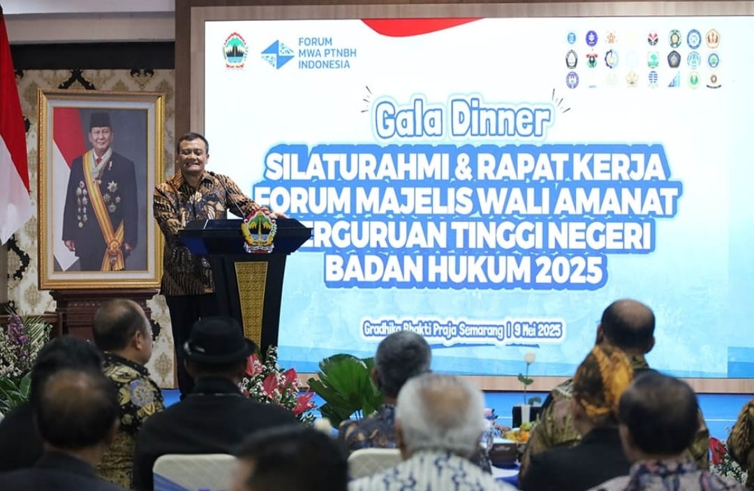 Pernyataan ini disampaikan Gubernur Jateng dalam Gala Dinner Silaturahmi dan Rapat Kerja Forum Majelis Wali Amanat Perguruan Tinggi Negeri Badan Hukum (MWA PTNBH) 2025 seluruh Indonesia pada 9 Mei 2025 di Gradhika Bhakti Praja, kompleks Kantor Gubernur Jawa Tengah.