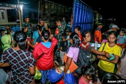 “Tentu saja ada ketakutan dan kekhawatiran, tapi kami sudah terbiasa dengan letusan di sini,” kata Rista Tuyu, seorang warga yang berusia 32 tahun.