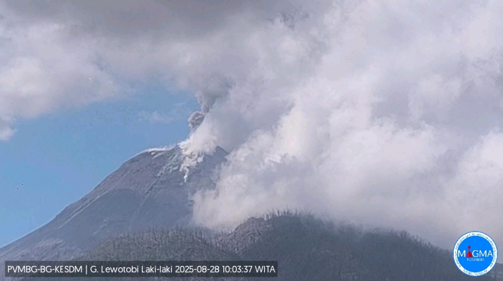 Jakarta, KabarTerkiniNews.co.id – Gunung Lewotobi Laki-laki di Nusa Tenggara Timur kembali meletus pada Kamis, 28 Agustus 2025, pukul 09:51 WITA. Tinggi kolom letusan mencapai 600 m di atas puncak berwarna kelabu dengan intensitas sedang hingga tebal ke arah barat daya dan barat. Erupsi terekam di seismograf dengan amplitudo maksimum 2.9 mm dan durasi 108 detik.