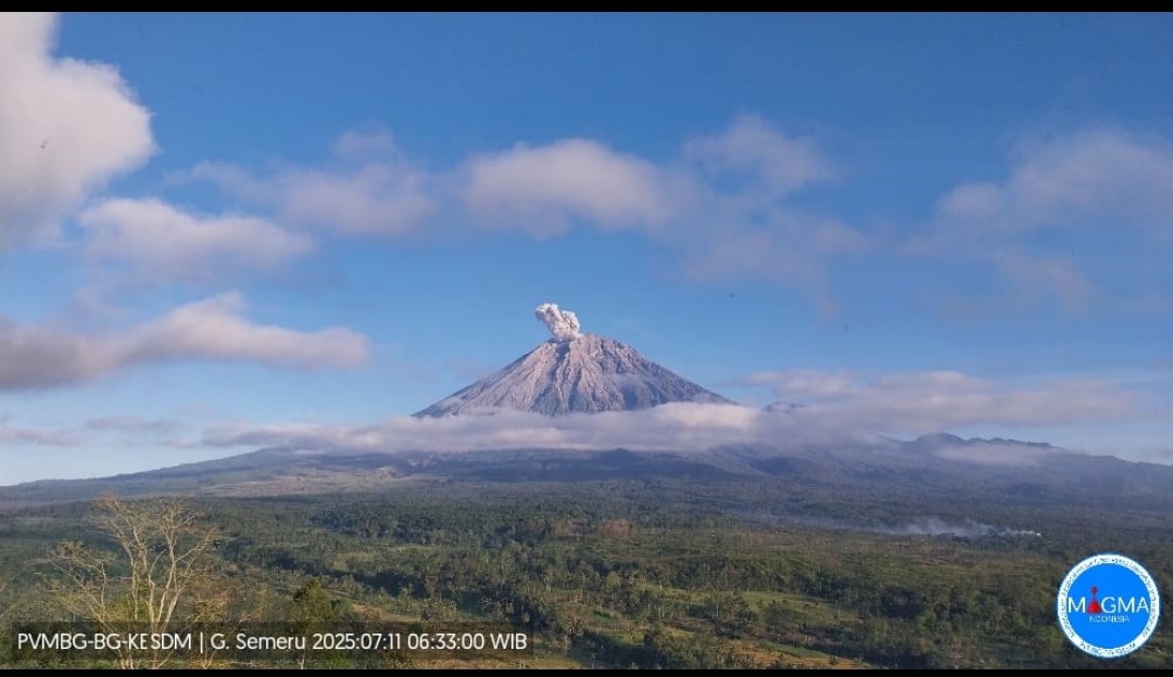 Lumajang, E Channel.co.id – Gunung Semeru yang terletak di Kabupaten Lumajang mengalami erupsi pada Jumat (11/7) Pk. 06:31 WIB. Erupsi berpotensi menimbulkan awan panas, guguran lava, dan lahar di sepanjang aliran sungai/lembah yang berhulu di puncak Gunung Api Semeru, terutama sepanjang Besuk Kobokan, Besuk Bang, Besuk Kembar, dan Besuk Sat serta potensi lahar pada sungai-sungai kecil yang merupakan anak sungai dari Besuk Kobokan.