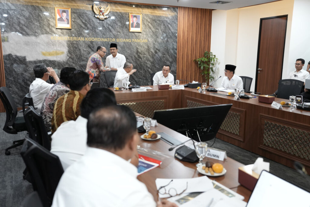 Menteri Sosial Saifullah Yusuf (Gus Ipul) dalam rapat koordinasi terbatas di Kementerian Koordinator Bidang Pangan, Kamis (10/4/2025).