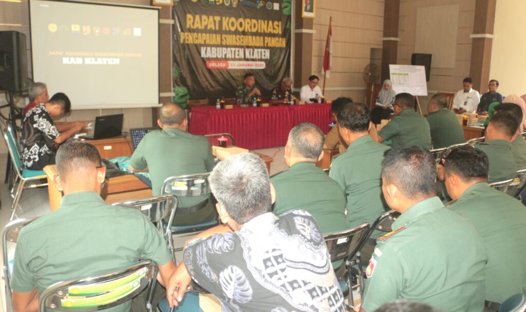 Klaten (21/01/2025) – Dalam rangka pencapaian Swasembada pangan Kodim 0723 Klaten bersama Pemkab Klaten melakukan rapat koordinasi. Rapat yang digelar di Aula mandiri pangan DKPP Jln. Perintis Kemerdekaan, Peraksangkal, Jonggrangan, Kec. Klaten Utara, Kabupaten Klaten, Selasa (21/01/2025) guna mewujudkan swasembada pangan yang kuat.Pemantapan ketahanan pangan.
