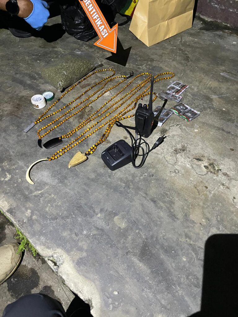 Barang bukti yang diamankan dari lokasi kejadian antara lain satu unit handy talky (HT), satu unit ponsel Vivo Y17, dan satu bungkus ganja kering. Anggota KKB tersebut juga diduga merupakan residivis kasus narkotika jenis ganja.