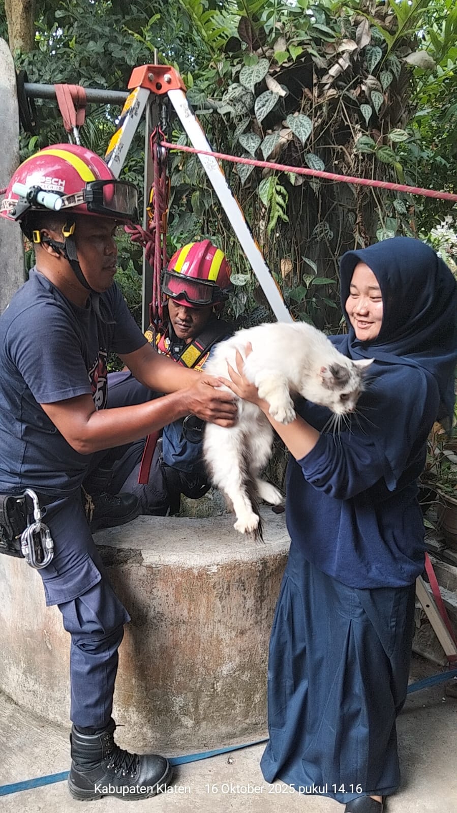 Kabid Pemadam Kebakaran dan penyelamat Satpol PP, Kabupaten Klaten, Sumino, Saat di Hubungi Kamis (16/10) Siang, membenarkan, adanya laporan dari warga ada kucing tercebur sumur.