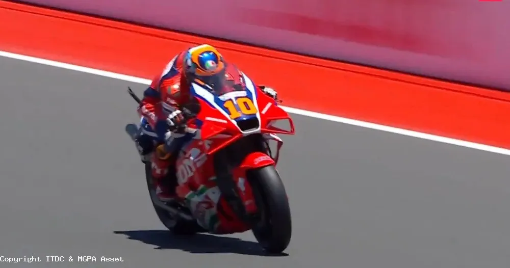 Pedro Acosta, bintang muda KTM, sejatinya berpotensi menjadi yang tercepat. Namun, serangkaian momen menegangkan membuatnya kehilangan ritme. Sang rookie melakukan penyelamatan brilian di Tikungan 15, sempat mengalami momen berbahaya di Tikungan 11, bahkan hampir bertabrakan dengan Francesco Bagnaia (Ducati Lenovo Team) di Tikungan 10. Meski demikian, kecepatannya tetap impresif hingga menempati posisi kedua.