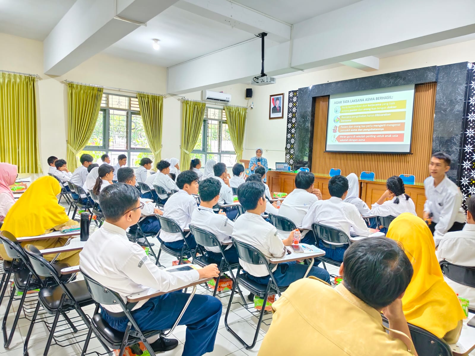 Dr. Supriyati, S.Sos., M.Kes., salah satu dari anggota tim peneliti mengungkapkan kegiatan skrining ini ditujukan untuk menjaring siswa yang teridentifikasi memiliki gejala atau risiko asma. Selanjutnya, para siswa ini menjalani pemeriksaan spirometri atau uji fungsi paru untuk menilai kondisi pernapasan secara objektif.
