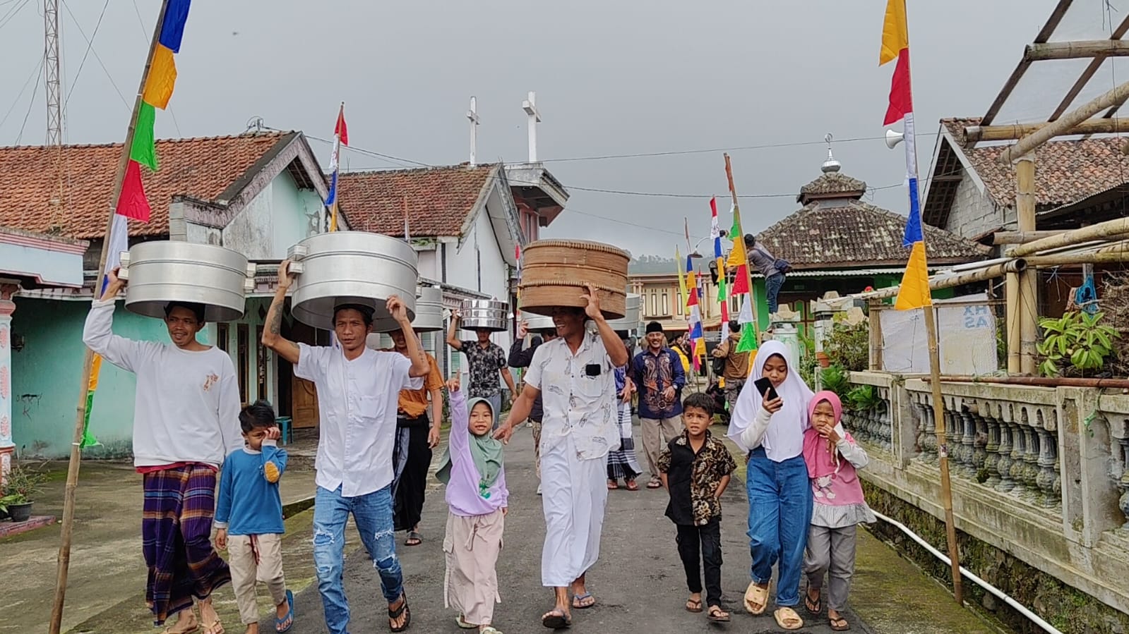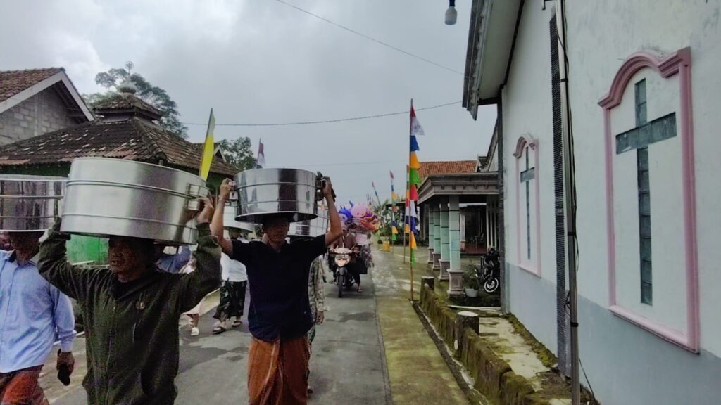 Sejak pagi, warga Muslim dan Nasrani bergotong royong menyiapkan tenong—wadah berisi aneka makanan—yang kemudian dibawa ke makam pemuka desa. Di sana, ratusan warga berkumpul, berdoa sesuai dengan keyakinan masing-masing, dan memohon agar para leluhur diterima di sisi Tuhan Yang Maha Kuasa.
