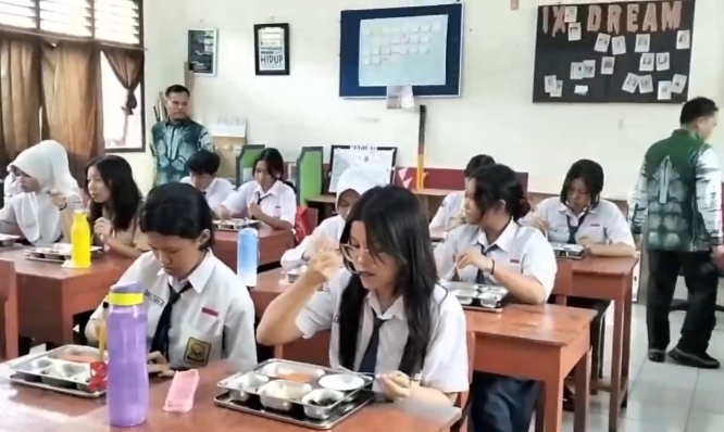 Dalam kunjungan tersebut, para perwakilan kepala sekolah memantau langsung proses pendistribusian makanan bergizi, mulai dari kedatangan makanan ke sekolah, pembagian kepada siswa, hingga kegiatan makan bersama di dalam kelas.