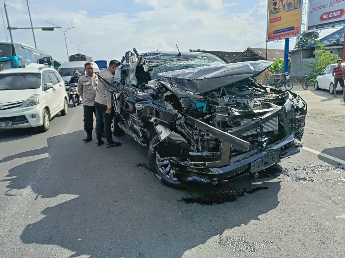 “Kejadiannya sekitar jam 08.00 WIB tadi. Mobil dari arah tol mau keluar,” ungkapnya.