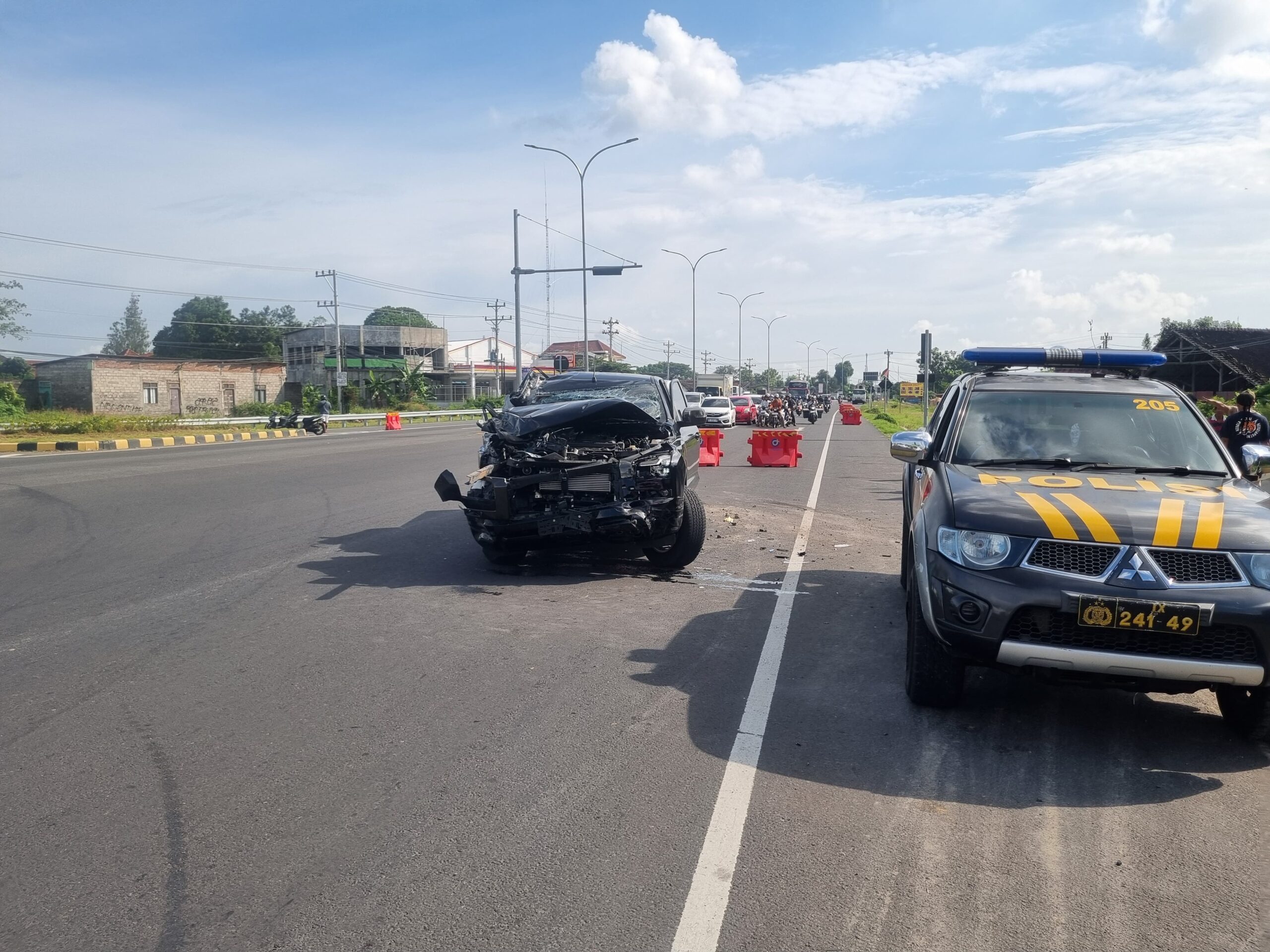 “Mobil, tronton dan motor. Infonya tadi mobil nabrak truk tronton dulu terus motor di simpang tiga exit tol, lalu pergi tidak tau kemana, ” Tuturnya.