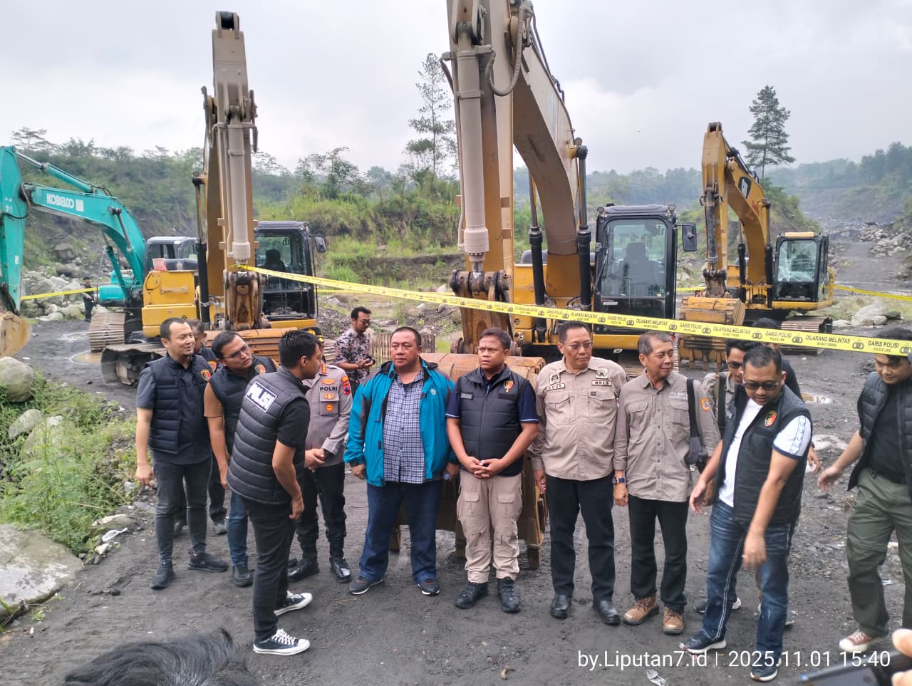 Dalam penggerebekan dramatis itu, aparat berhasil mengamankan lima unit alat berat ekskavator dan satu dump truck yang tengah digunakan untuk mengeruk material vulkanik.