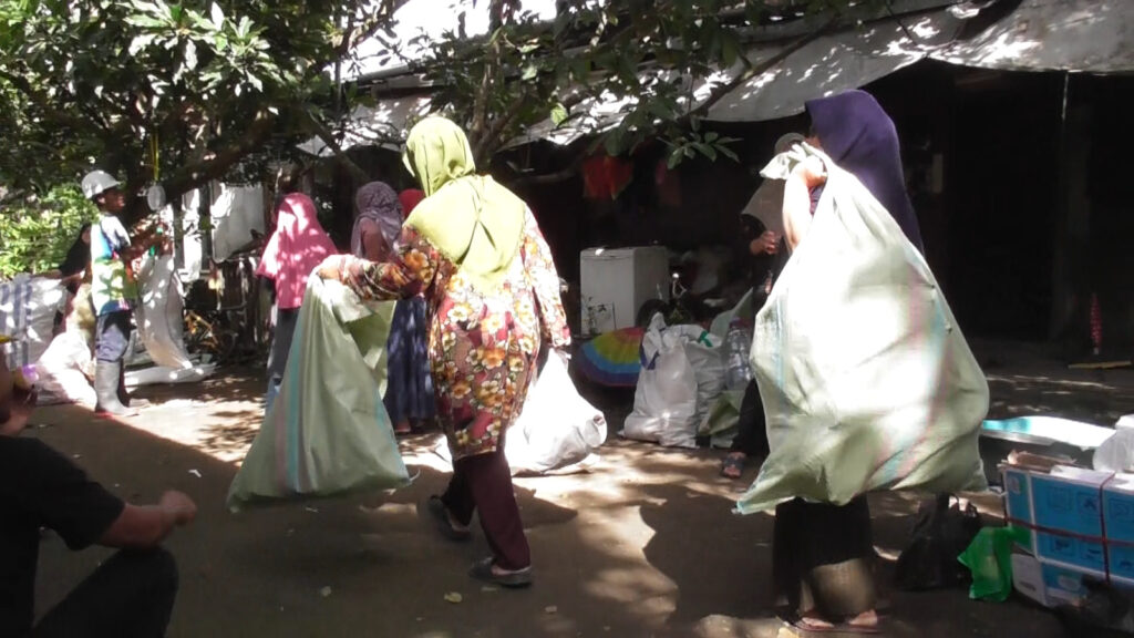 Di titik pengumpulan sampah, warga berdatangan membawa karung berisi sampah seperti plastik, kardus, pecahan kaca, hingga residu pakaian. Setiap sampah yang disetor ditimbang dan dicatat sebagai nominal tabungan di bank sampah “Darlink Berseri,” yang menjadi bagian dari sirkular ekonomi.