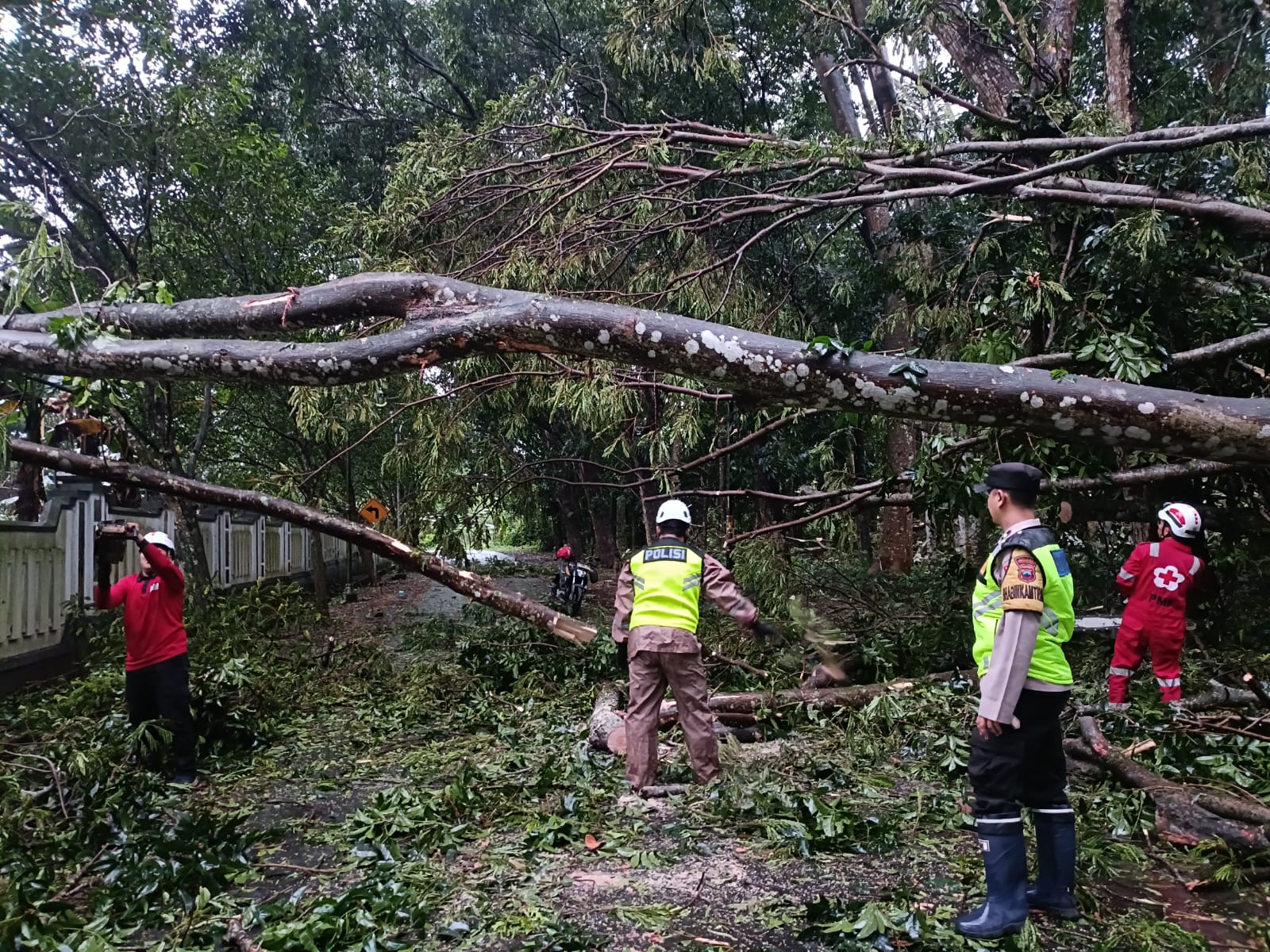 “Kondisi di lapangan cukup menantang karena beberapa pohon berukuran besar dan menutup seluruh akses utama. Namun, berkat koordinasi yang baik antar instansi, seluruh material pohon berhasil dievakuasi menggunakan alat pemotong mesin,” jelas Ipda Warsito.