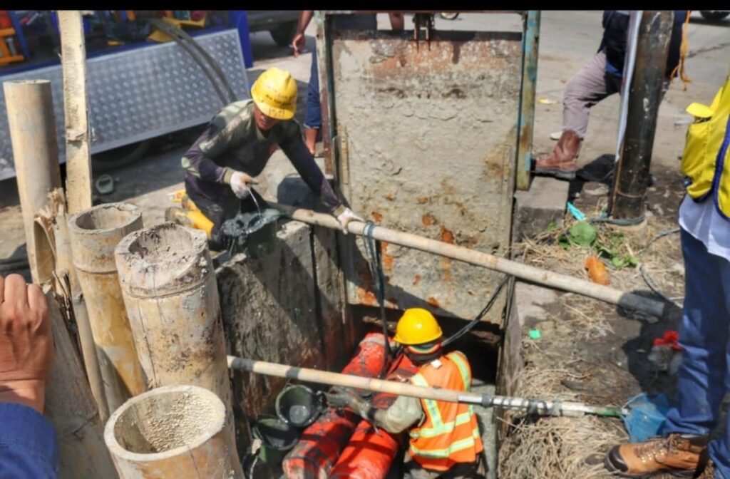 “Untuk keringkan air depan politron di sisi selatan jalan, sebenarnya sudah dipasang 4 pompa. Dua pompa (Pusdataru), satu pompa BPBD Jateng dan satu pompa BBWS. Tambah dua lagi, siang ini dikirim dari Kudus (Pusdataru) dan satunya dari BBWS,” kata Kepala Dinas Pekerjaan Umum, Sumber Daya Air dan Tata Ruang (Pusdataru) Jateng Henggar Budi Anggoro saat mengecek kondisi pompa dan jalan bersama Kadinas PUBMCK Hanung Triyono di Sayung Demak, Sabtu ( 14/06/ 2025).