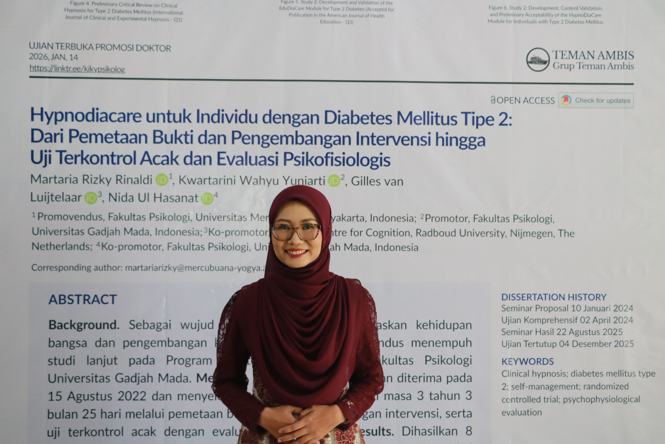 Dalam disertasinya yang berjudul ‘Hypnodiacare untuk Individu dengan Diabetes Mellitus Tipe 2: dari Pemetaan Bukti dan Pengembangan Intervensi Hingga Uji Terkontrol Acak dan Evaluasi Psikofisiologis’, Kiky menjelaskan bahwa pasien diabetes melitus tipe 2 membutuhkan pengelolaan diri, regulasi emosi, serta manajemen diri yang sangat ketat. “Sementara ini penanganan diabetes lebih banyak ke edukasi manajemen diri, diketahui bermanfaat secara kognitif (pengetahuan), tetapi tidak menyasar aspek psikologis atau emosi secara mendalam,”paparnya.