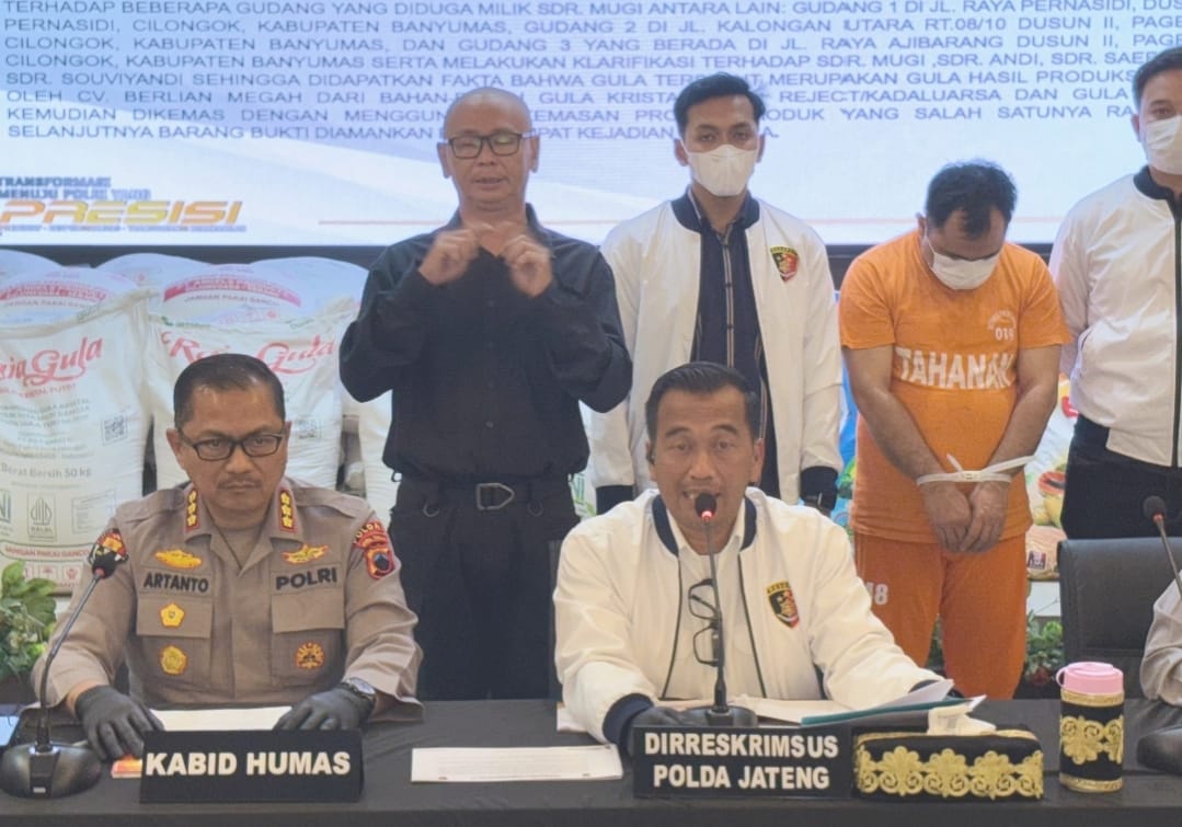 Konferensi pers pengungkapan kasus dipimpin oleh Dirreskrimsus Polda Jawa Tengah Kombes Pol Arif Budiman didampingi Kabid Humas Kombes Pol Artanto, serta turut dihadiri perwakilan PT RNI (ID Food), selaku produsen resmi produk gula merek Raja Gula.