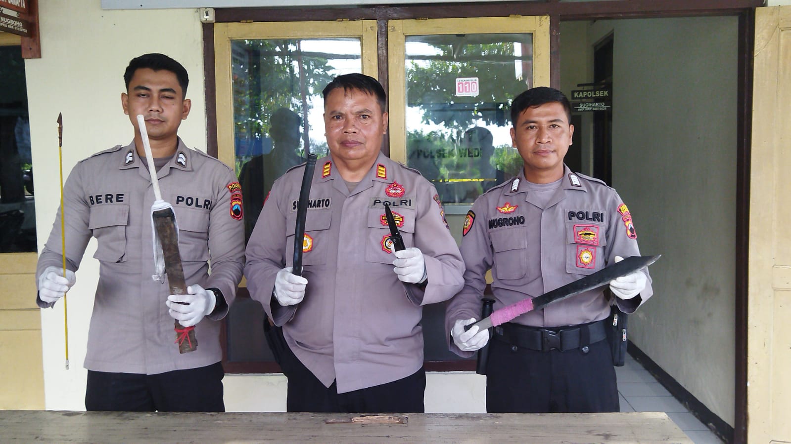 Sugiharto menambahkan, Selain mengamankan pelaku WD (34) polisi mengamankan sejumlah barang bukti, belum diketahui secara pasti barang bukti senjata tajam tersebut digunakan untuk apa oleh pelaku.