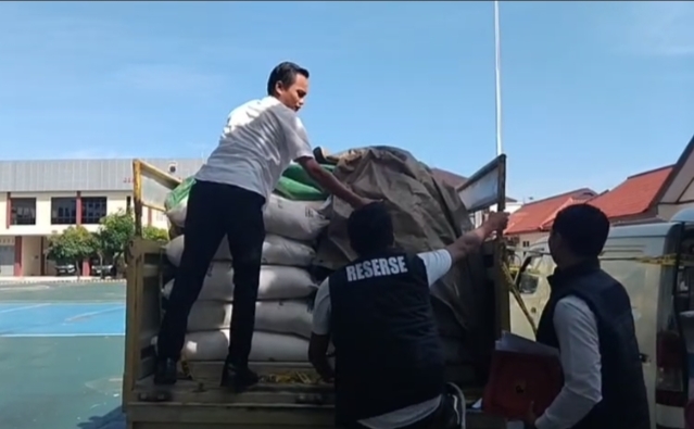 Selain mengamankan para tersangka, polisi juga menyita sejumlah barang bukti, termasuk puluhan karung pupuk urea bersubsidi, pupuk Phonska bersubsidi, satu unit mobil boks, serta sejumlah uang tunai.