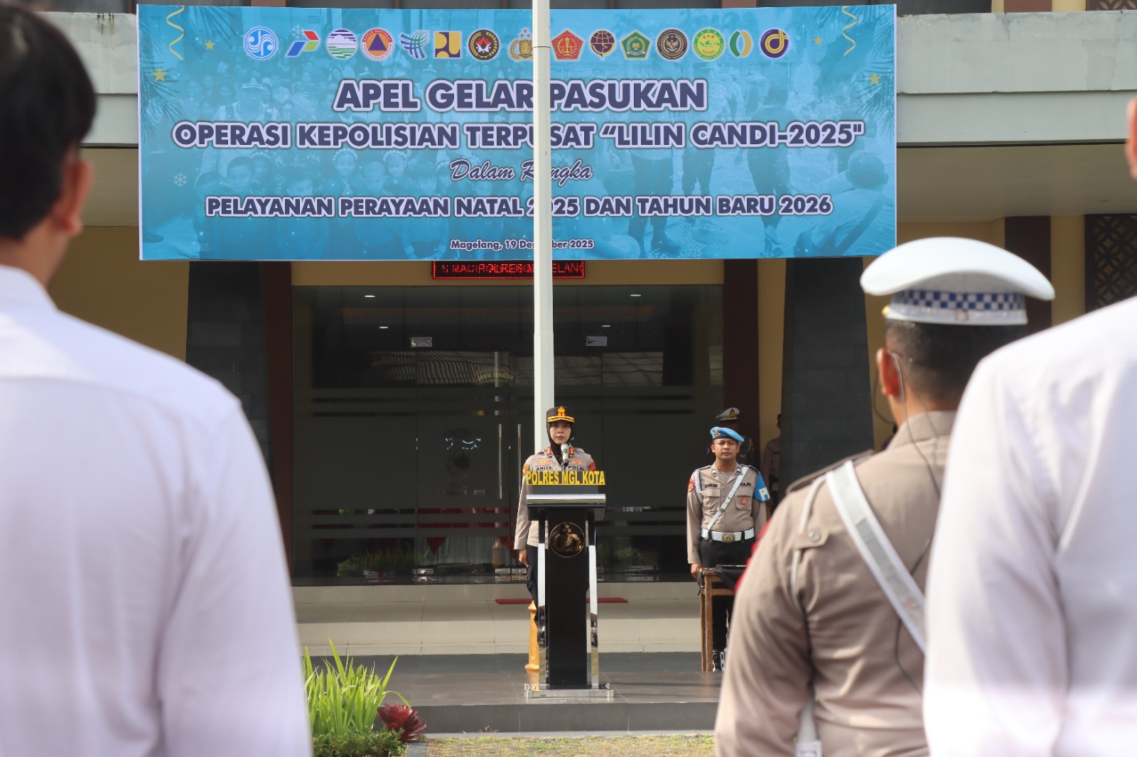 Magelang, KabarTerkiniNews.co.id – Polres Magelang Kota melaksanakan Apel Gelar Pasukan Operasi Lilin Candi 2025 sebagai bentuk kesiapan pengamanan perayaan Natal 2025 dan Tahun Baru 2026. Apel gelar pasukan tersebut dipimpin langsung oleh Kapolres Magelang Kota AKBP Anita Indah Setyaningrum, S.I.K., M.H., Jumat (19/12/2025).