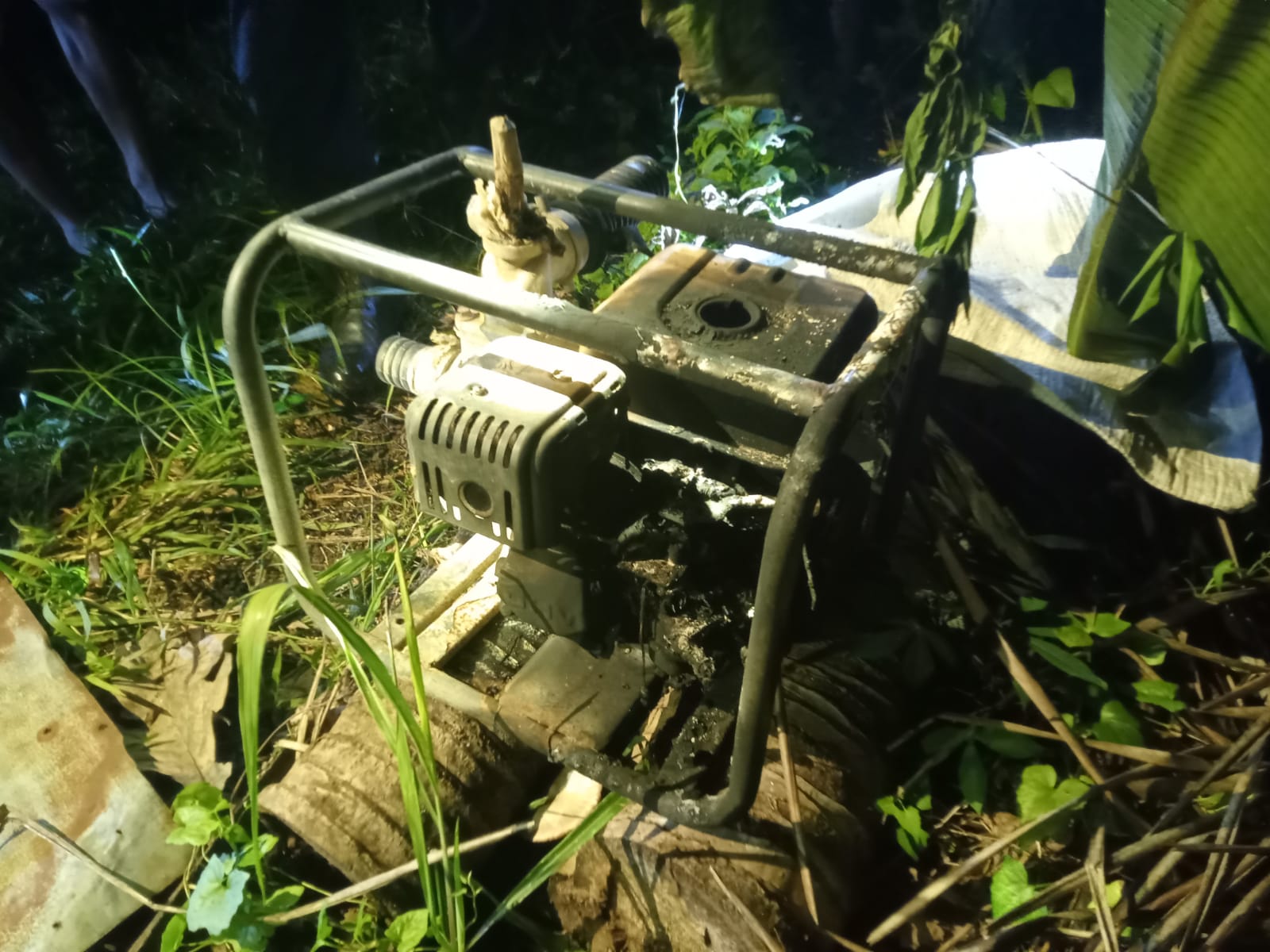 Foto : satu unit mesinh diesel yang diduga di tinggalkan pelaku di TKP . foto : Istimewa
