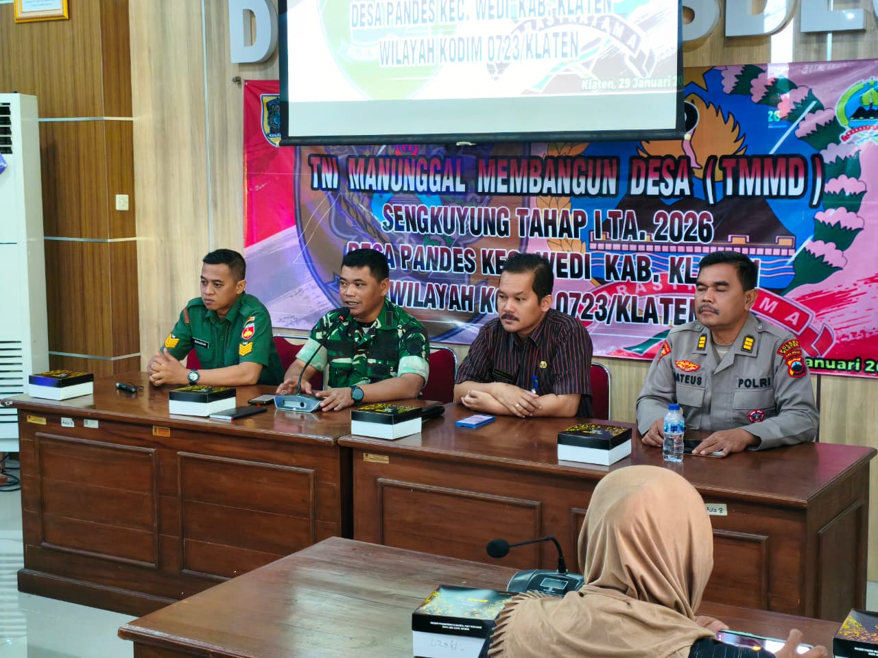 Indra menambahkan, TMMD Sengkuyung Tahap I Tahun Anggaran 2026 di Desa Pandes Kecamatan Wedi Kabupaten Klaten dijadwalkan dibuka pada 10 Februari 2026 dan ditutup pada 11 Maret 2026.