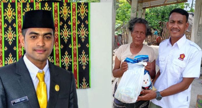 SABU RAIJUA, NTT- Merayakan HUT Partai Gerakan Indonesia Raya Ke 17 tahun 2025, Ketua DPC Wilayah Sabu Raijua, Hendrik Tudu bersama Kader Partai Gerindra membagikan sejumlah paket sembako berupa Beras, Telur dan Mie Instan kepada sejumlah kaum lanjut usia, Kamis ( 6/2/2025 ) di Desa Molie, Kecamatan Hawu Mehara, Kabupaten Sabu Raijua.