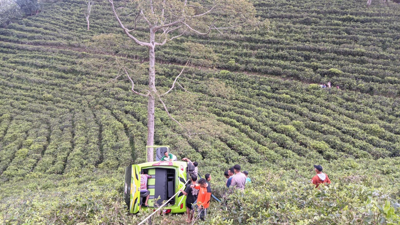 KARANGANYAR – Nasib nahas dialami rombongan wisatawan asal Kabupaten Gresik Jawa Timur ini. Mobil Isuzu Elf Nopol W 7885 AG yang mereka tumpangi, mengalami rem blong dan terperosok ke kebun teh yang berada di Dukuh Kadipekso, Desa Gumeng, Kecamatan Jenawi, Jumat (4/4/2025) siang.