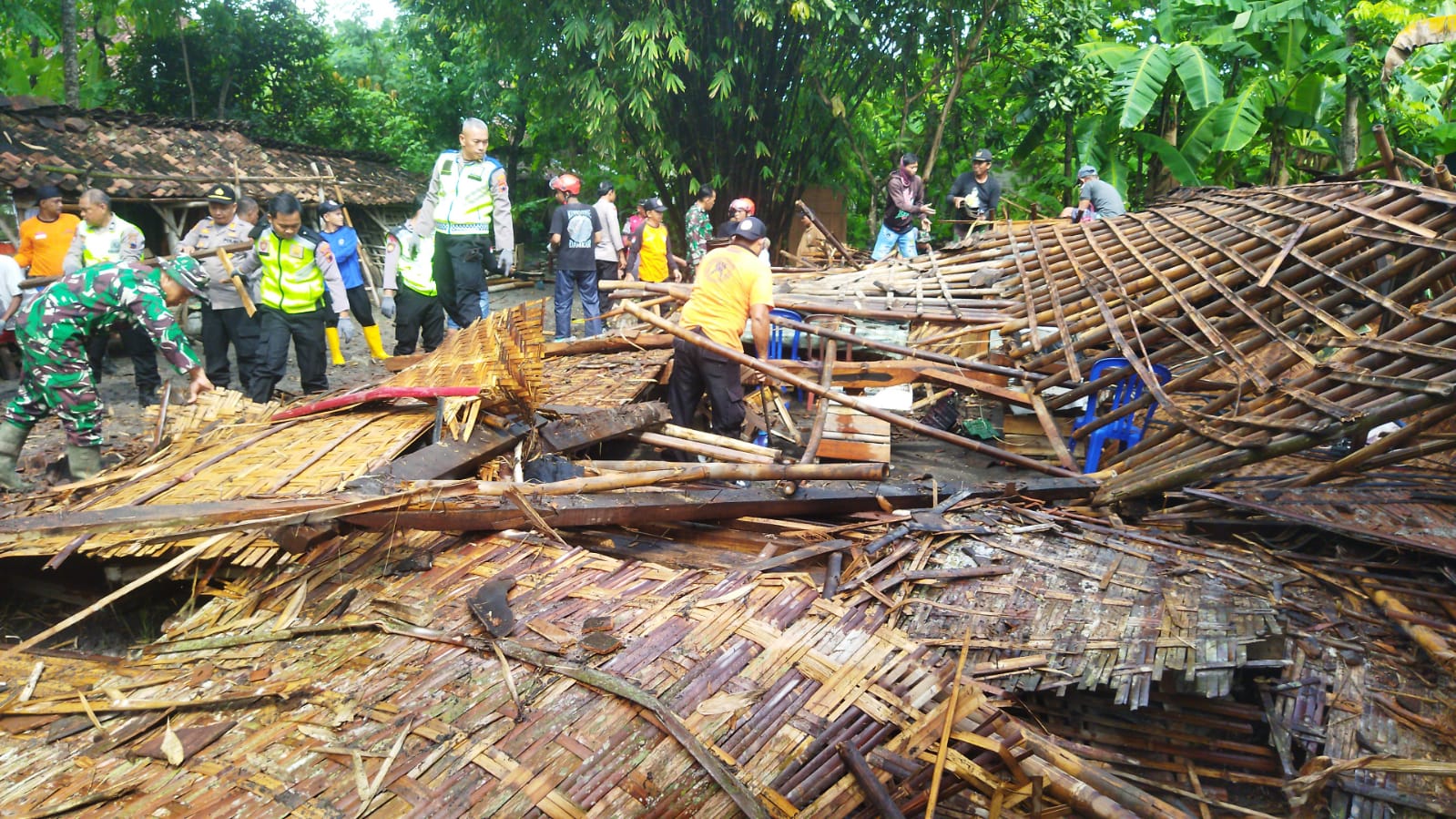 ” Kami koordinasi dengan Pemerintah desa, dengan dibantu oleh TNi, Polri, dan Relawan Kecamatan Jogoboyo, Trucuk, melakukan kerja bakti, pembersihan reruntuhan bangunan,” Ungkap Sahono.