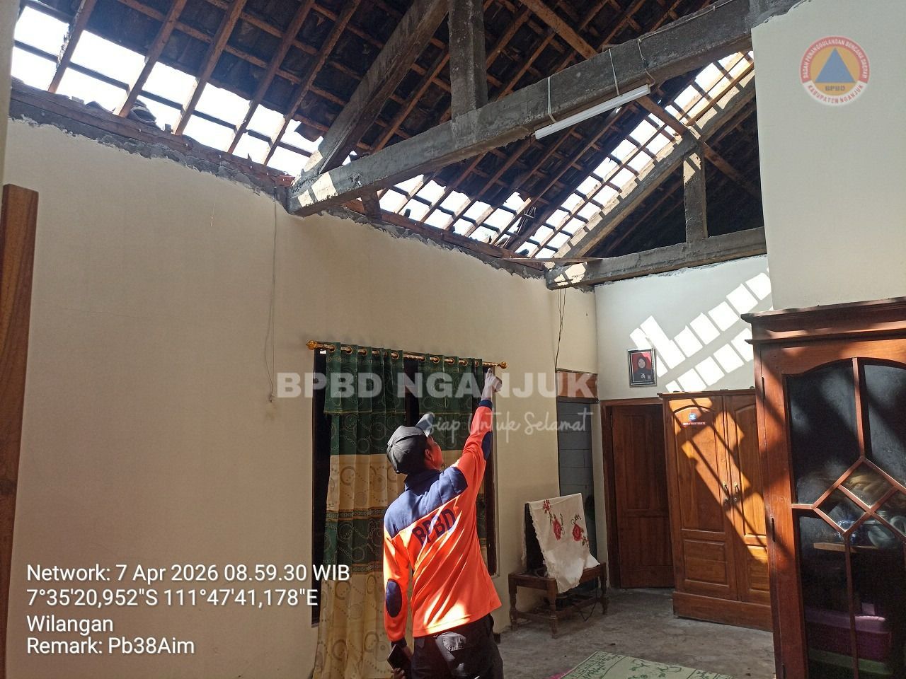 BPBD Kabupaten Nganjuk bersama warga bergotong royong melakukan perbaikan rumah dan evakuasi pohon tumbang. Kondisi cuaca di lokasi kejadian pada Selasa (7/4) terpantau cerah berawan.