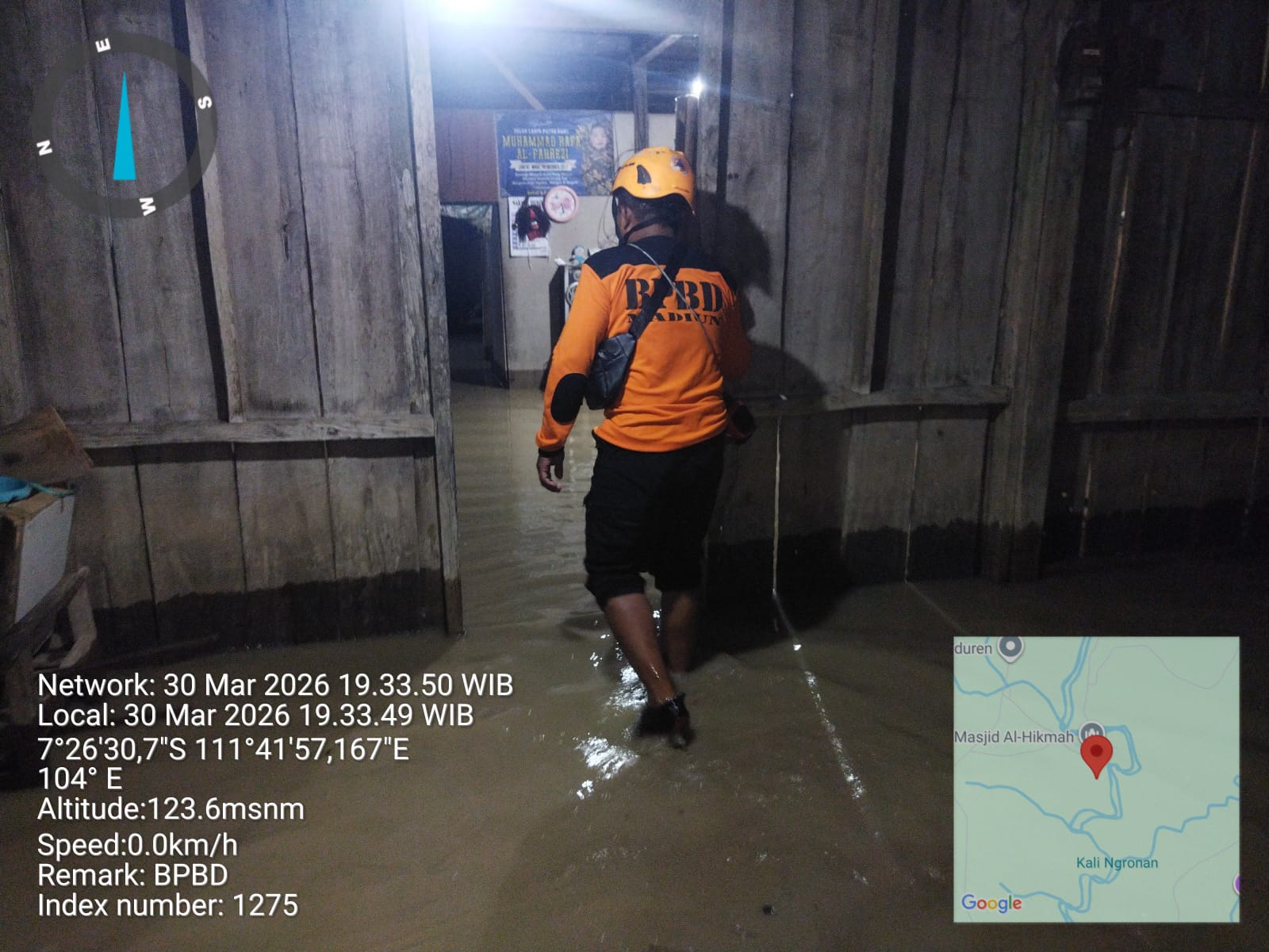 Beralih ke Provinsi Jawa Timur, banjir melanda Kecamatan Pilangkenceng, Kabupaten Madiun, pada Senin (30/3) sekitar pukul 17.30 WIB. Hujan lebat menyebabkan genangan air setinggi rata-rata 40 cm yang mempengaruhi 23 kepala keluarga dan 23 unit rumah.